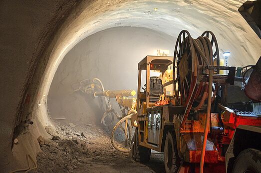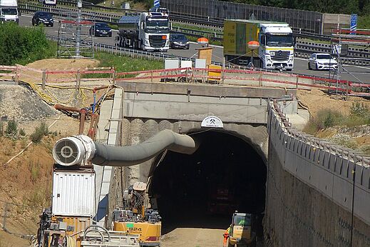 - Spritzbeton-Vortrieb unter der Autobahn mit geringer Überdeckung von nur 3,0 m im Schutz umfangreicher Sicherungsmaßnahmen