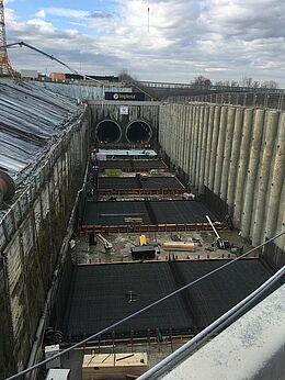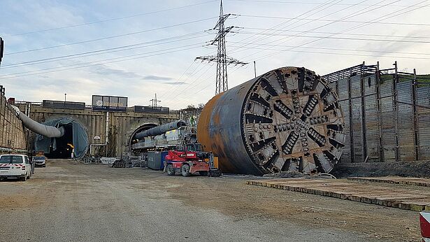 - TVM-Vortrieb unter der Autobahn mit geringer Überdeckung von ca. 10,0 m