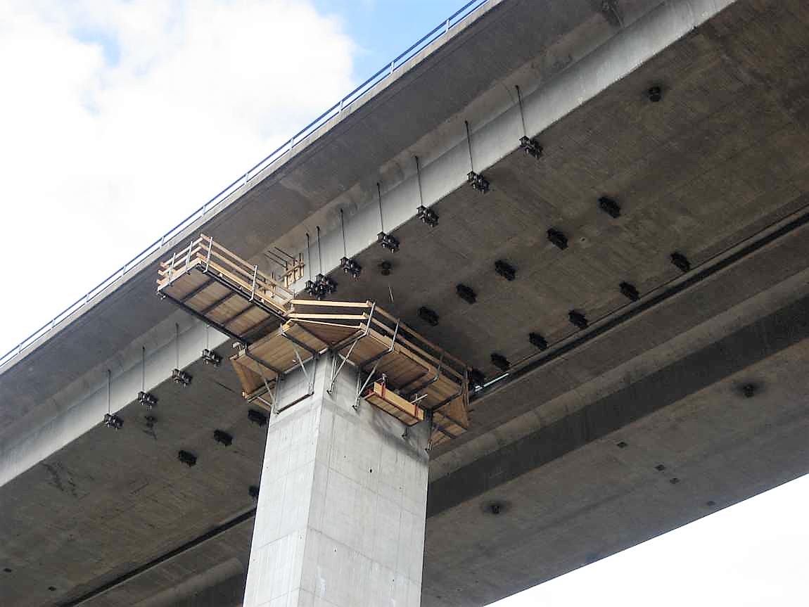 - Querverschub des 46,40 m hohen Hilfspfeilers sowohl für den Rückbau als auch für den Ersatzneubau der zweiten Richtungsfahrbahn