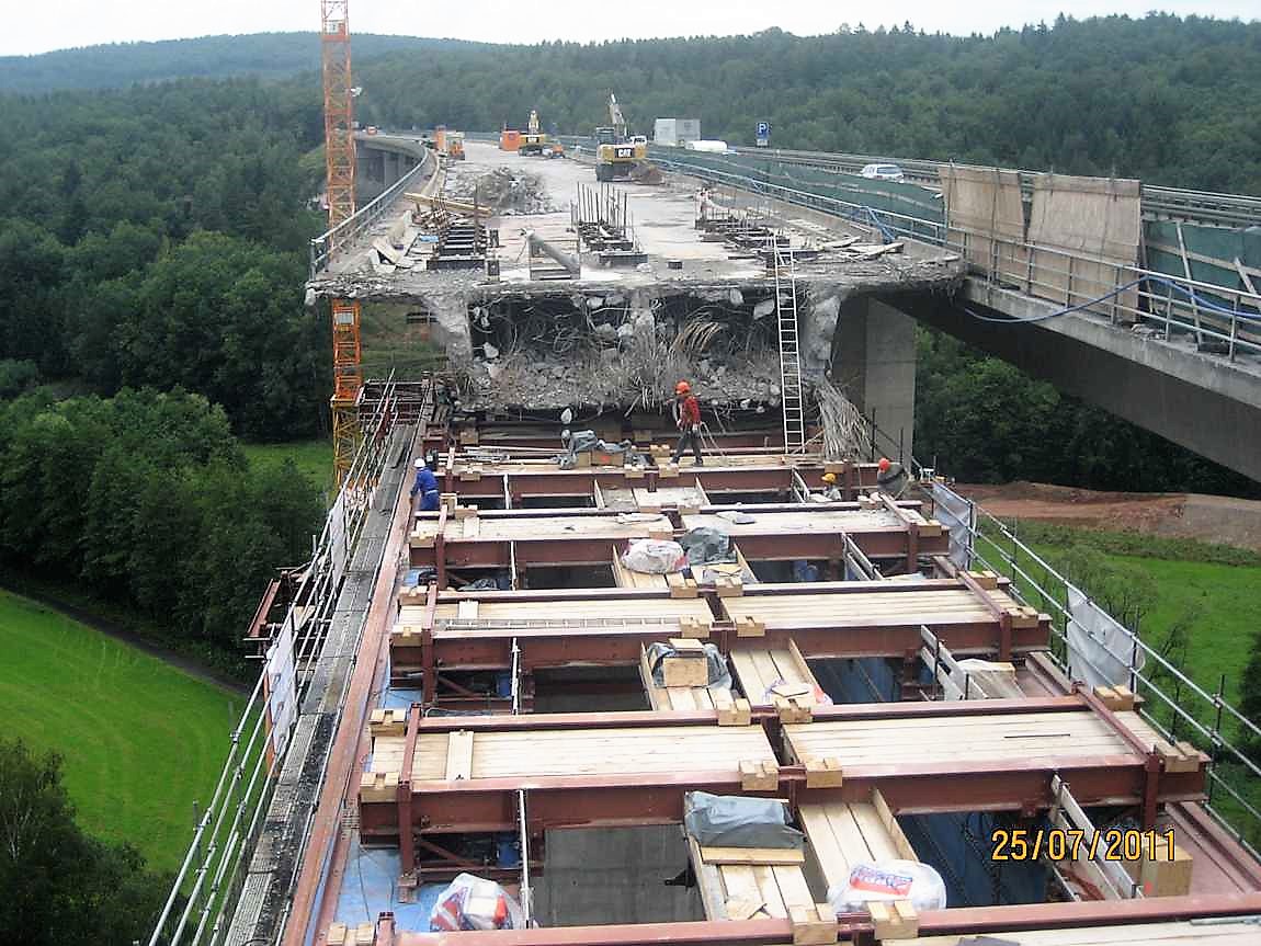 - Weltweit erstmaliger Rückbau einer Talbrücke dieser Größenordnung mit Hilfe einer Vorschubrüstung