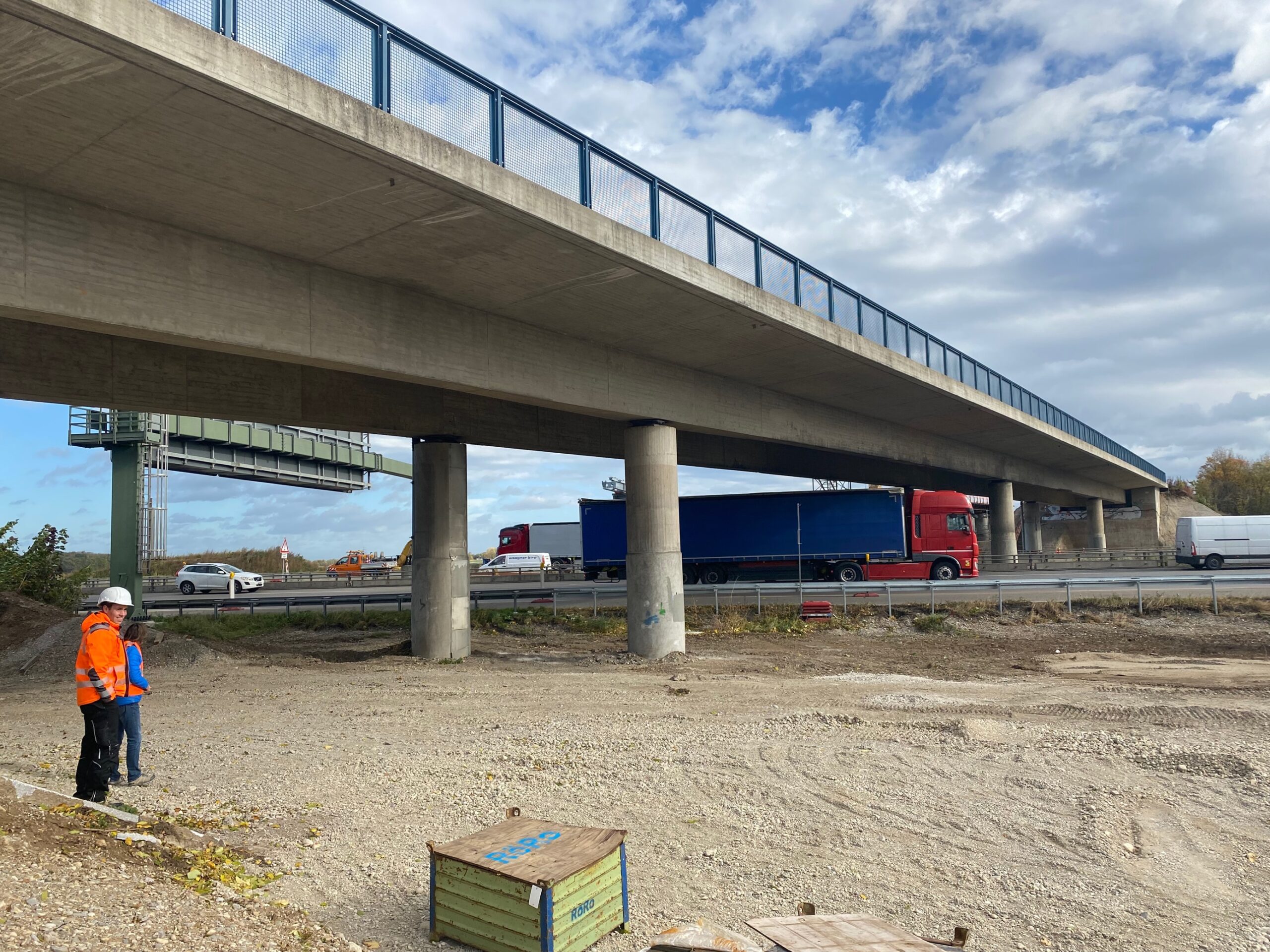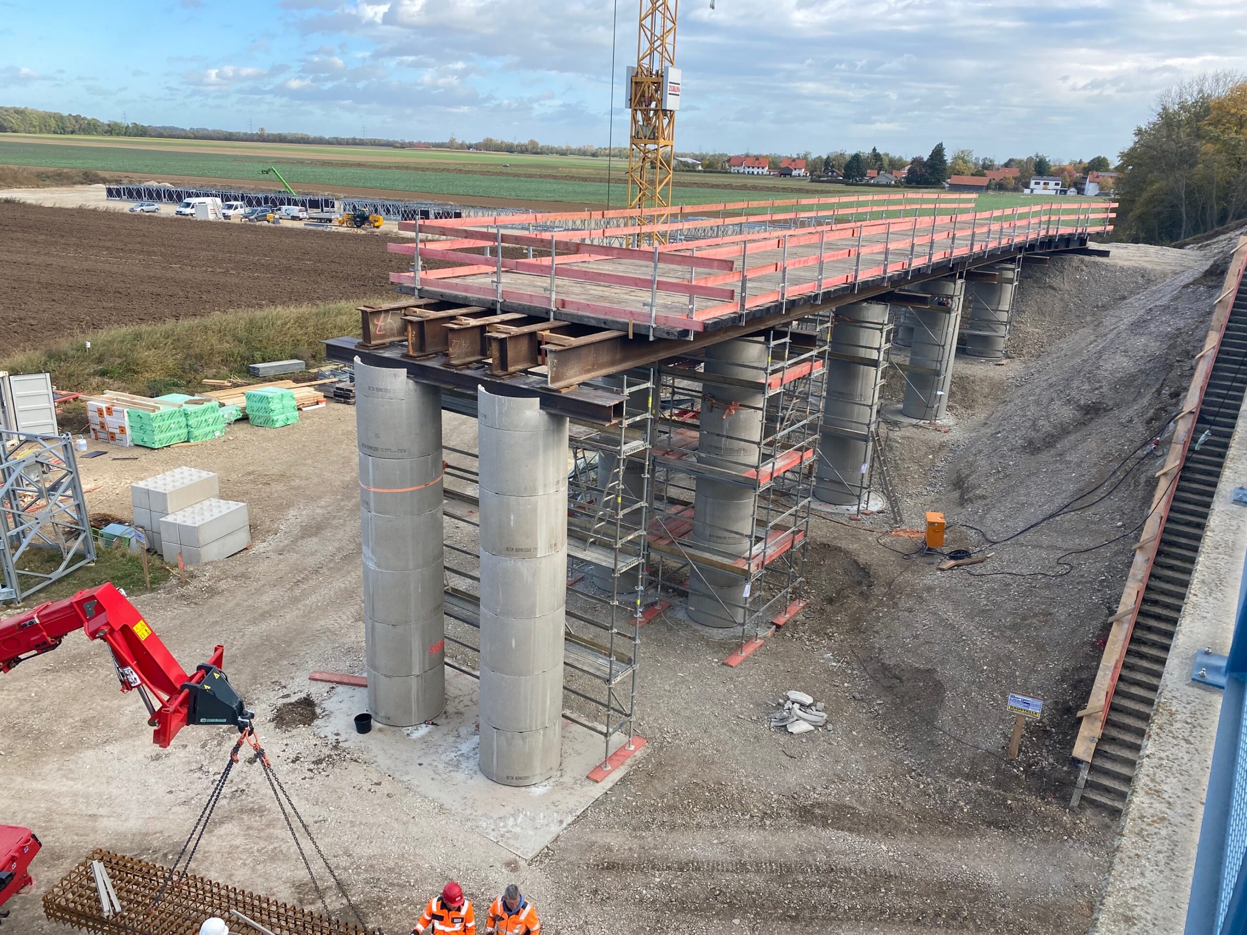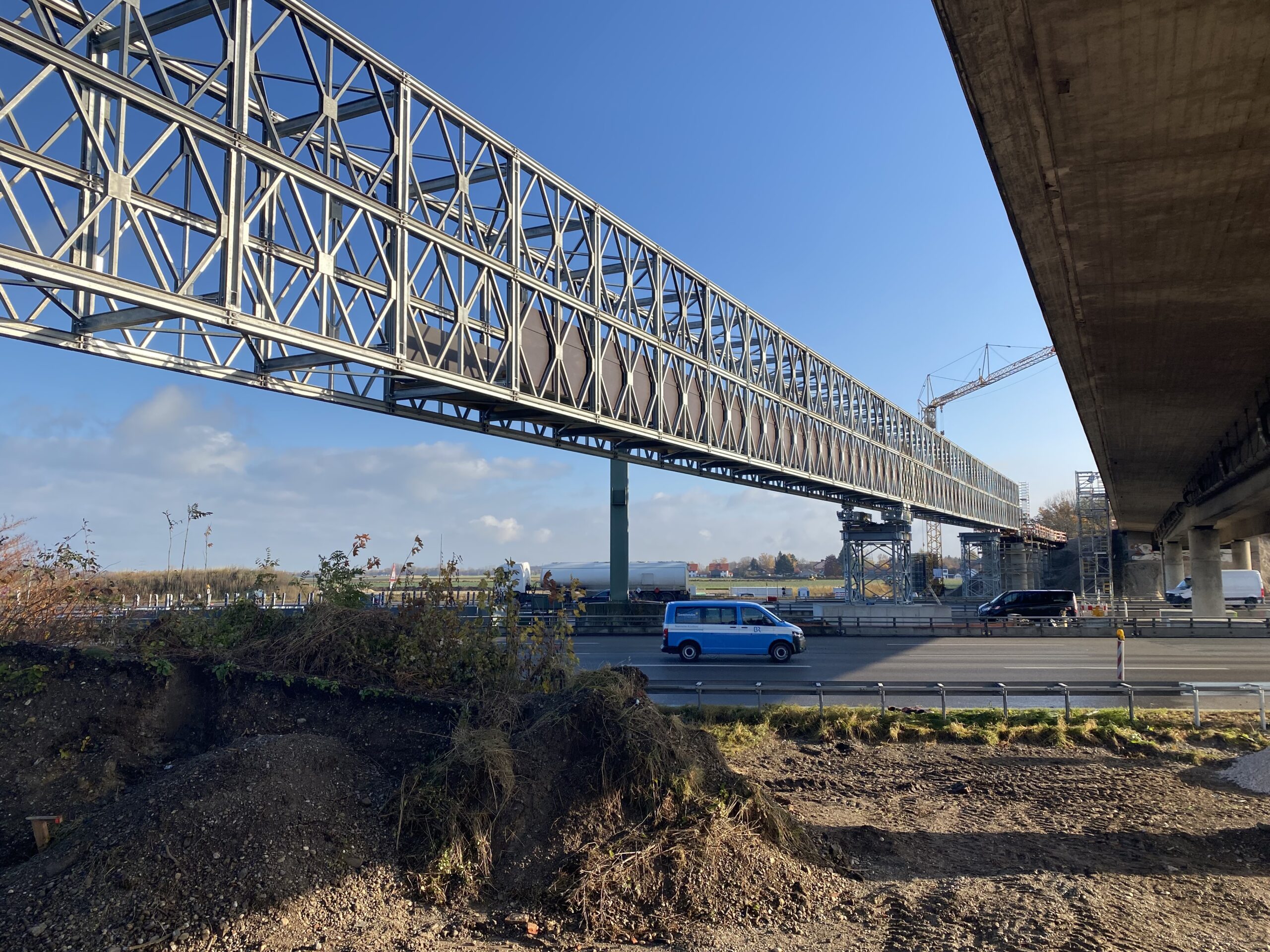 Der Ersatzneubau wird zur Sicherstellung des Lichtraumprofils der Autobahn um 1,15 m überhöht auf Traggerüst hergestellt.