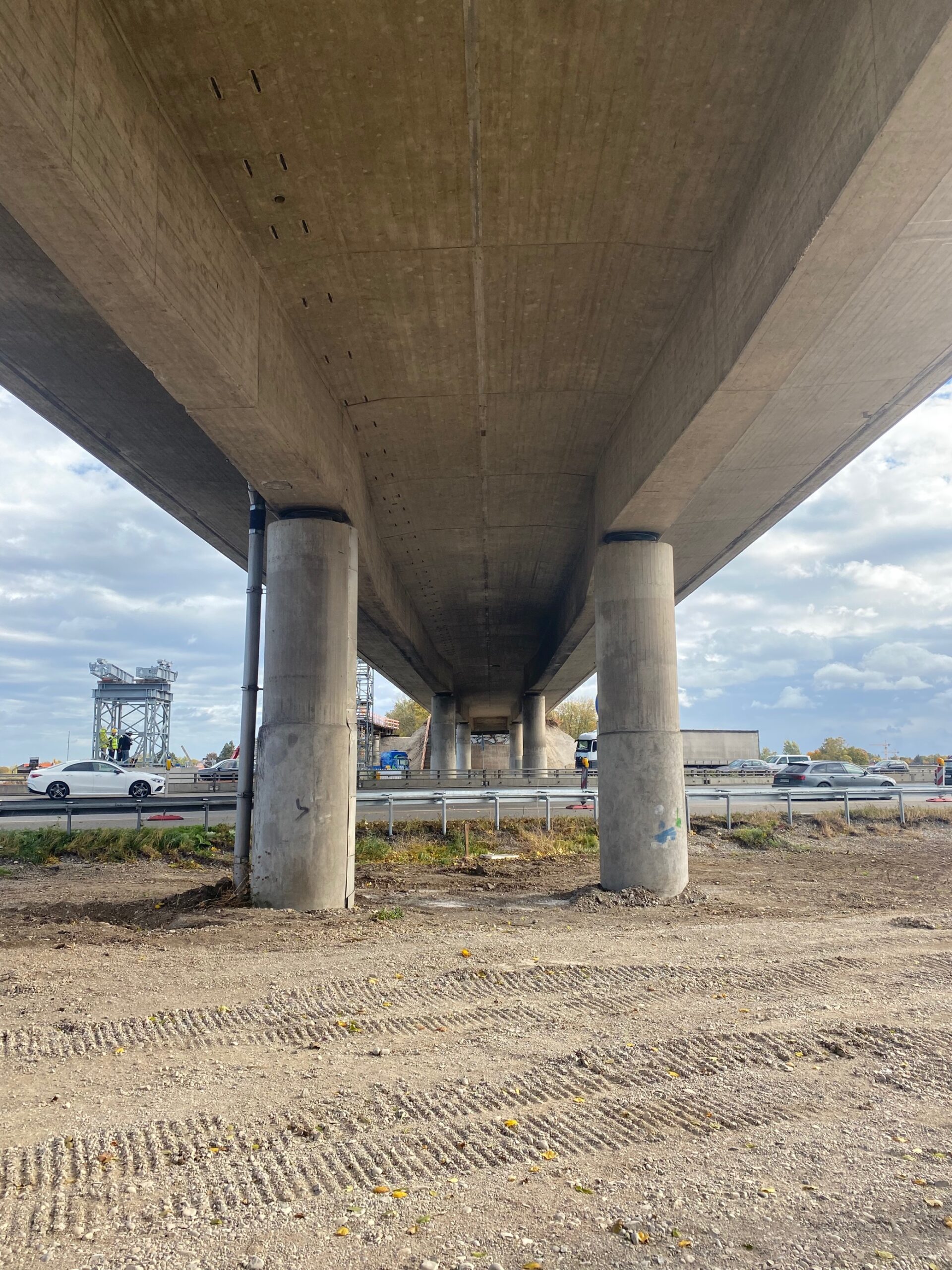 Die Projektarbeit umfasst den Rückbau des Bestandsbauwerks, den Ersatzbeubau einer Spannbetonbrücke mit Länge 120,6 m, eine Behelfsbrücke zur Aufrechterhaltung des Geh- und Radweges sowie eine Lärmschutzwand gegründet auf Rammrohren.