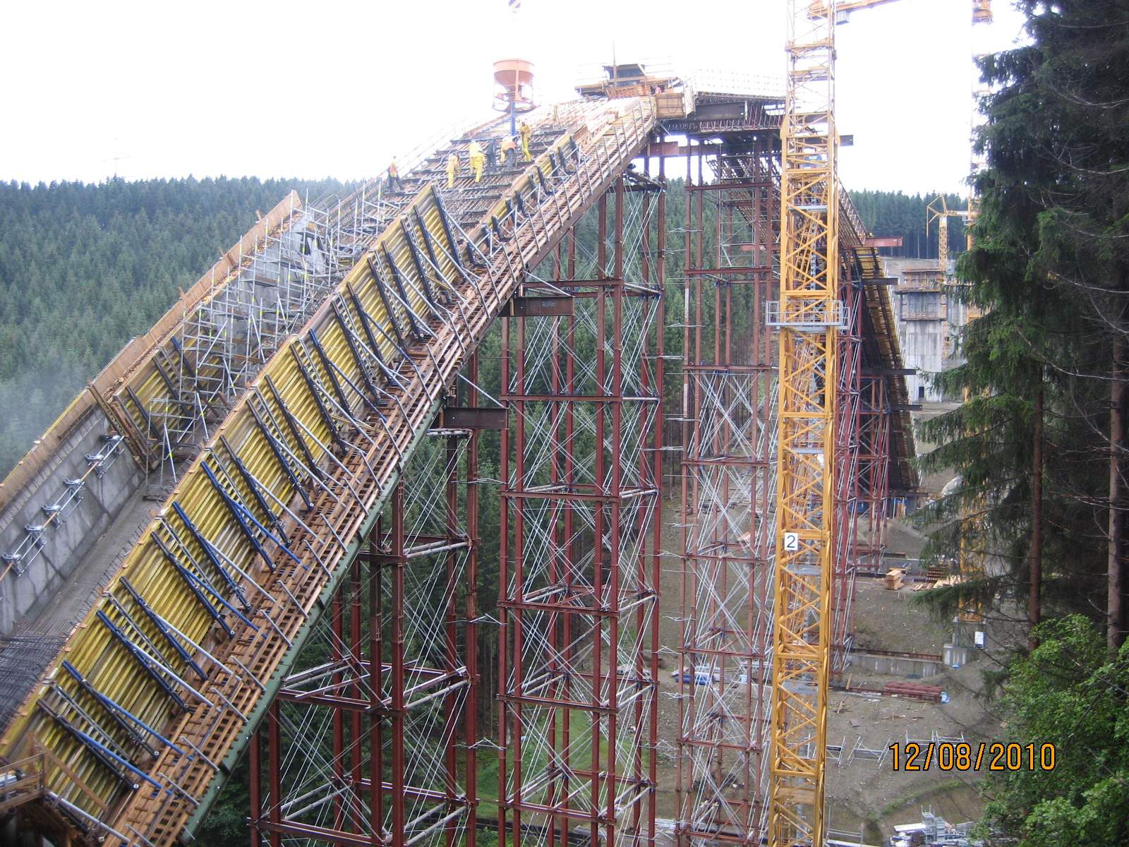 - Kraftübertragung zwischen Beton, Schalung und Traggerüst in Bogenbereichen mit großer Neigung, Lastdurchleitung durch Schalung und Trägerlage im Bereich der Stützenstiele der Traggerüsttürme