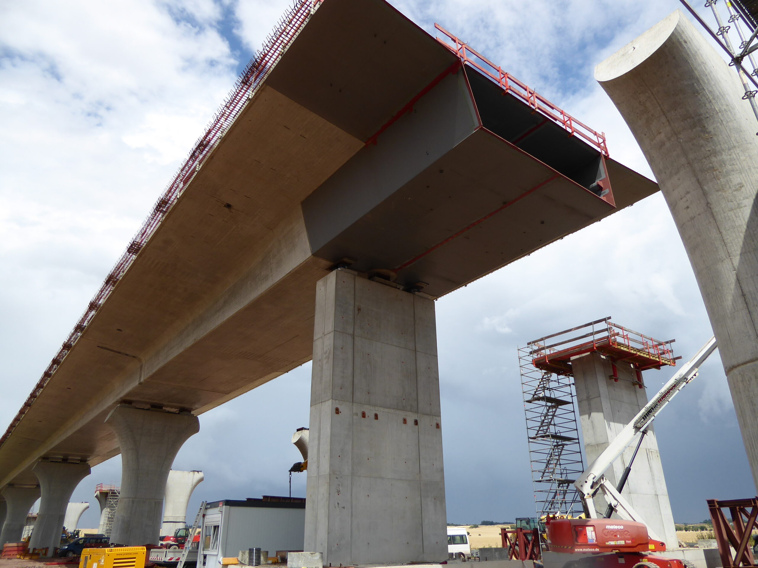 einer Orthoverbund-Fahrbahnplatte. Die Überbauten der Vorlandbrücke haben jeweils zweistegige Plattenbalkenquerschnitte.