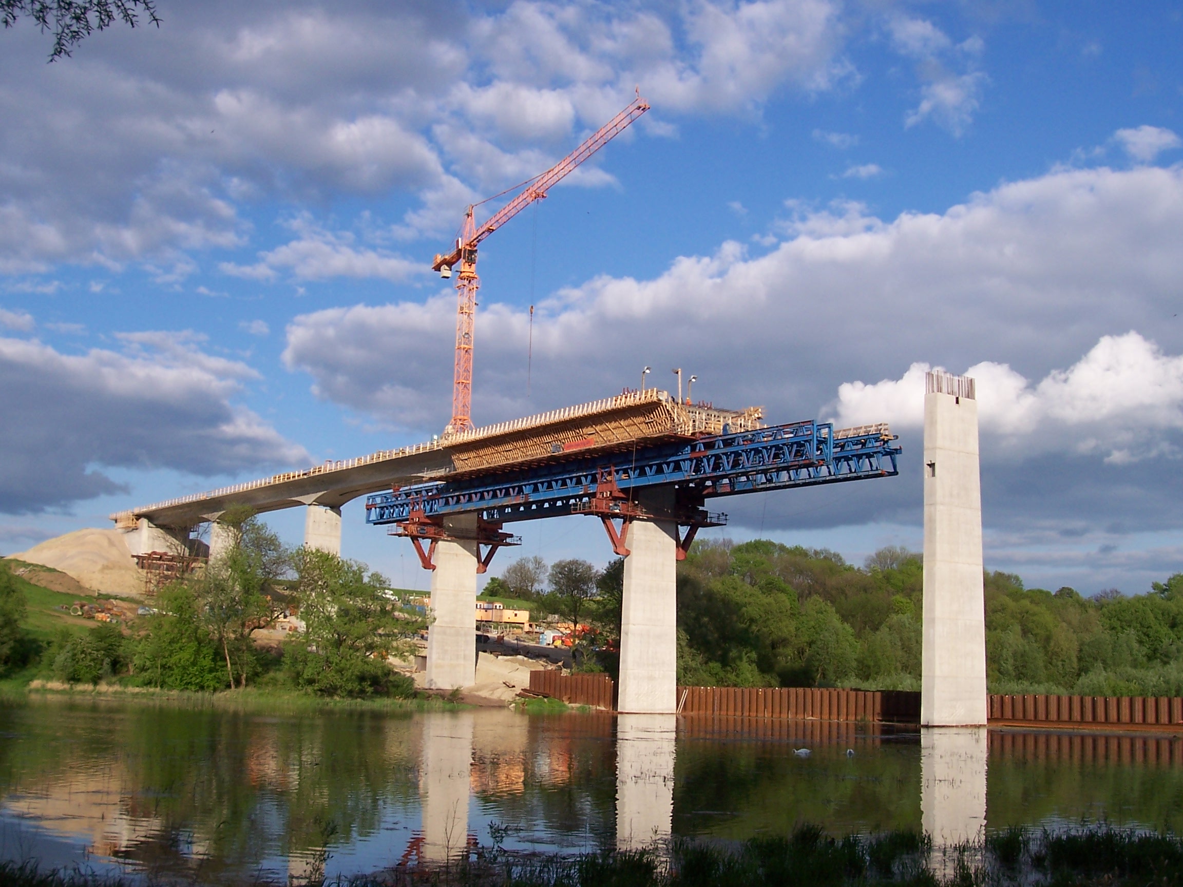 - Herstellung mittels untenliegendem, pfeilergestützten Lehrgerüst. Die Pfeiler wurden z.T. planmäßig schief hergestellt, damit diese im Endzustand senkrecht stehen