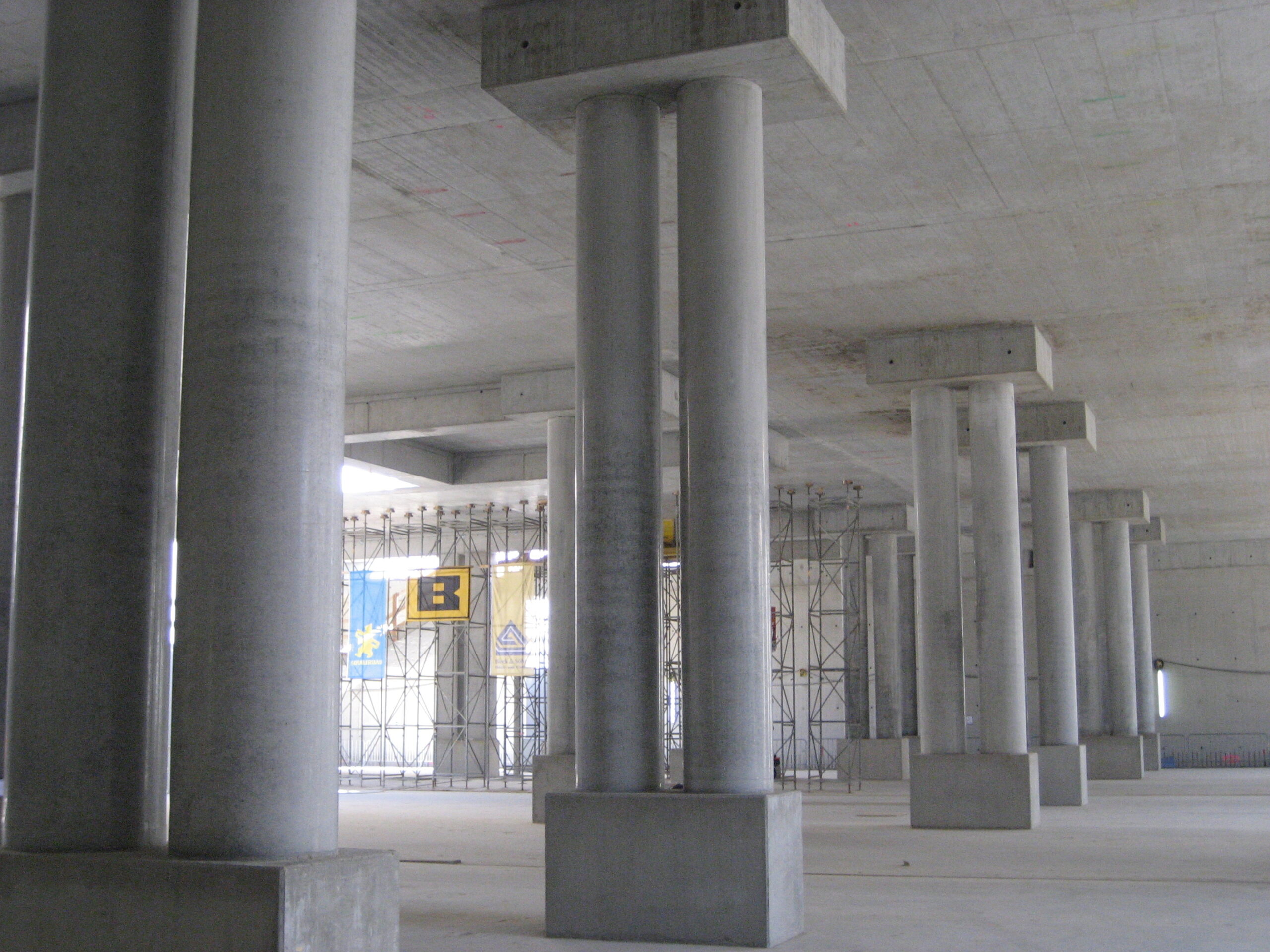 - Im Bahnhof Doppelstützen aus Beton C50/60 mit Bemessung auf Anprall/teilweiser Ausfall und Brand (Heißbemessung)